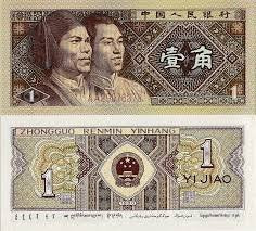 Banknot o nominale 1 YI JIAO ( Chiny ) , stan bankowy.